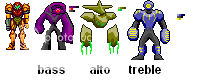 Bleh, since you guys werent entertained by my multicolored legged ing that runs while moving back and forth, i decided id make so more original characters. I liked albatross, but i decided id like some variety. Here is my new line of characters, THE SONATA. Yes, theyre named after a music, and all there names are music terms (varsity band geek here). So far, here are 3 of my creations, BASS, ALTO, and TREBLE.